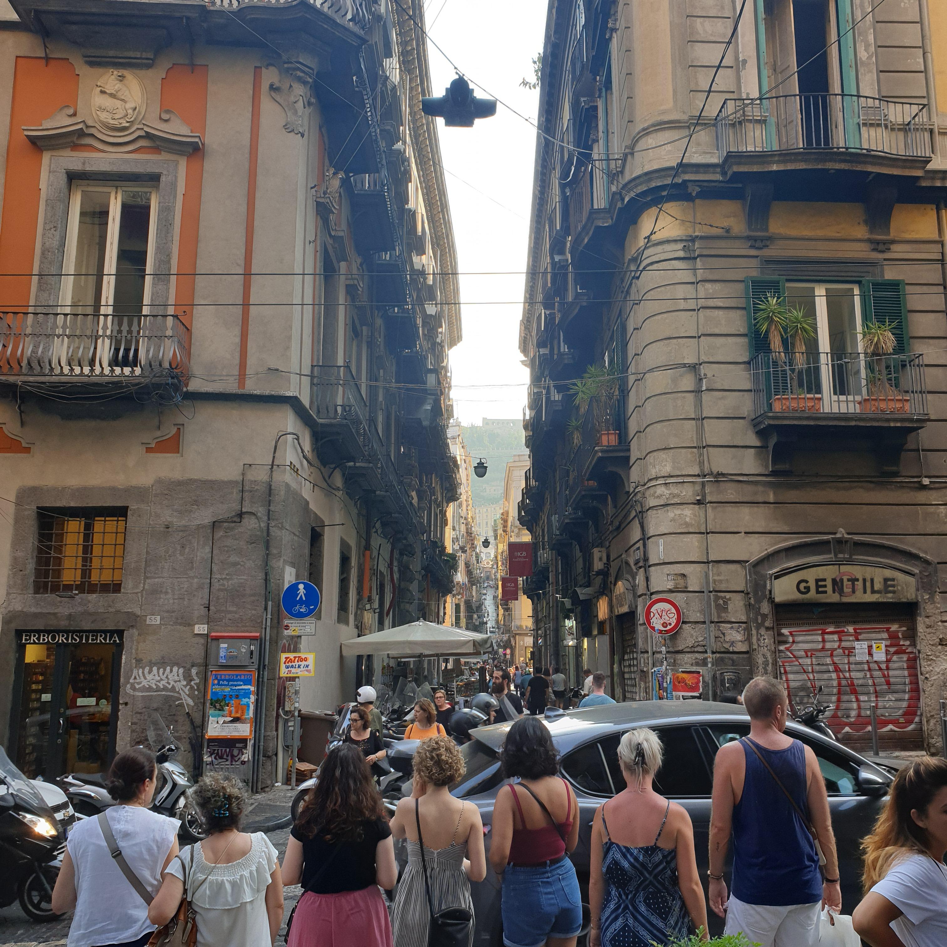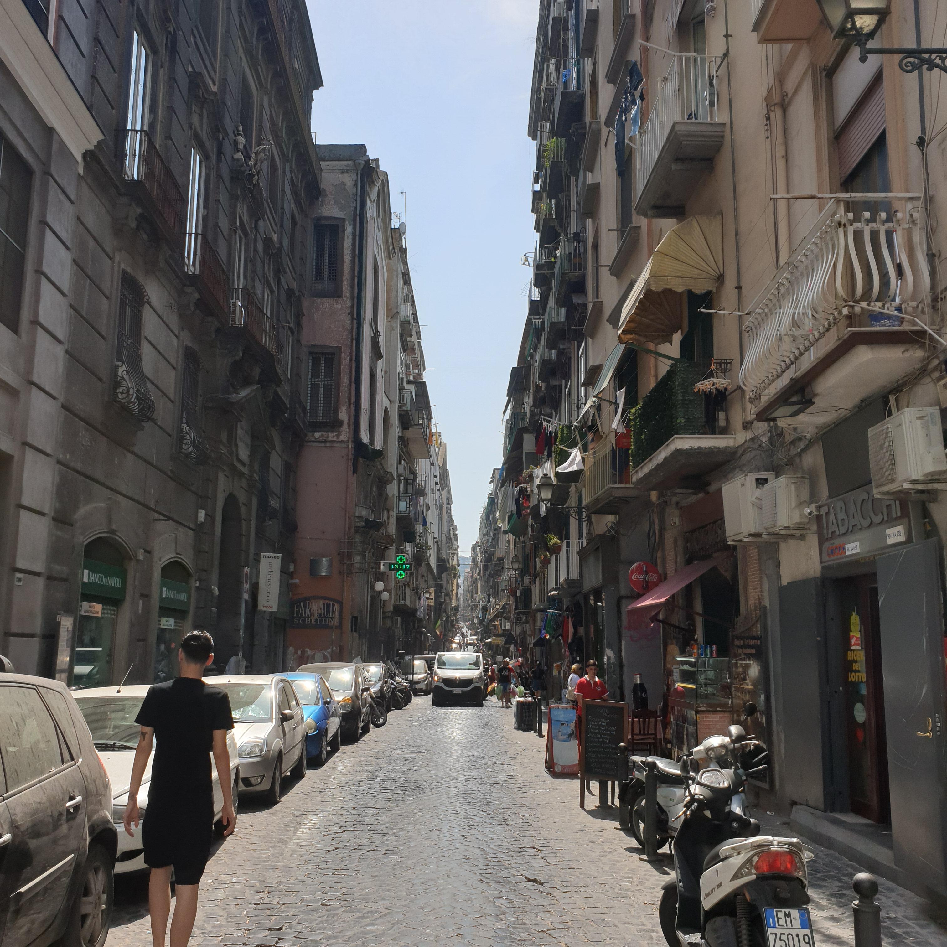 나폴리역에서 숙소까지 도보로 10분 거리였지만, '비포장도로 + 무거운 캐리어 + 뜨겁고 습한 날씨'의 시너지로 20분 정도 걸렸다.